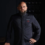 A modern and sharp chef jacket. The CRISTAL men's chef jacket in the Prestige range is made of 50% lyocell and 50% recycled polyester with a non-crease coating. It has a stand collar, ultra-flat press stud front, cuffs with vents and press stud tabs with pintuck details. The side panel creates a more fitted look whilst the side slits provide comfort and freedom to move. The stitching and LAFONT embroidery under the pen holder give the finishing touch to this long-sleeve chef jacket designed for catering professionals. Also available for women.